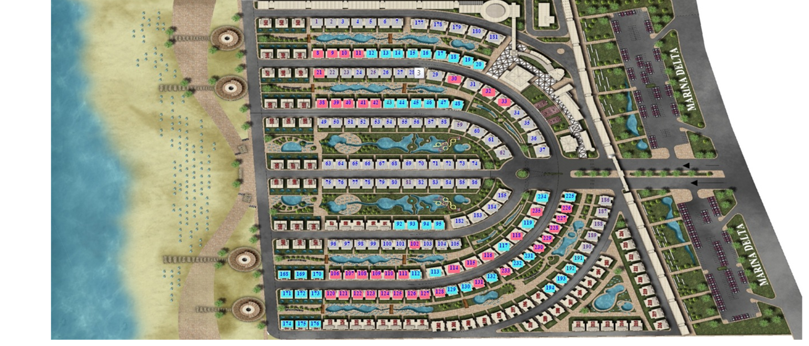 Project design showing the count of buildings and the number of units available within each building